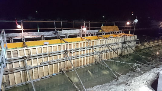 岸壁の拡幅水中コン6スパン、胸壁5スパンの防波堤上部工6スパンのコンクリート打設が終了しました